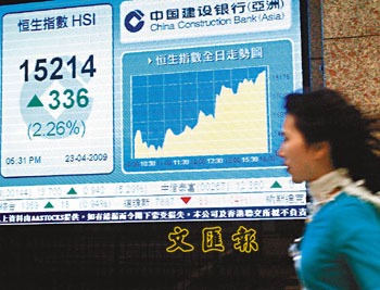 中新網4月24日電 據(jù)香港《文匯報》報道,港股經過兩天跌市后,23日受惠內地股市氣氛轉好,加上資金有回流跡象,港匯呈強,香港金管局連續(xù)兩天出手干預,令大市顯著反彈。
