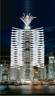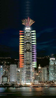 “幻彩詠香江”匯演主要是平面,而是次則要利用國金高度,帶動(dòng)其余17幢配合表演的大廈,因分半鐘的匯演會(huì)看到五光十色的煙火,在國金外墻又上又落,或成扭曲狀的特別效果。