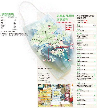 據(jù)香港明報報道,在香港7個醫(yī)院聯(lián)網(wǎng)中,新界東和新界西的急癥室求診人次,為第二及第三多,分別達1280人次和920人次。反觀港島西急癥室求診人次偏低,只有380,灣仔律敦治醫(yī)院急癥室求診人次更稍微下降。醫(yī)管局呼吁,患流感市民可先到私家醫(yī)生或家庭醫(yī)生求診,毋須到急癥室求醫(yī)。