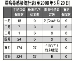 腸病毒感染統(tǒng)計表(至2008年5月20日)。(圖片來源:澳門日報)