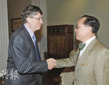 蓋茨12日不忘大贊北京奧運(yùn)開幕式“精彩”。他訪港首個行程是會見行政長官曾蔭權(quán),討論信息科技界如何與特區(qū)政府在改善教育、推動數(shù)碼共融、實(shí)現(xiàn)數(shù)碼21發(fā)展藍(lán)圖等方面合作。蓋茨晚上發(fā)表題為“下一個十年的創(chuàng)新科技”演說,并與香港3間大學(xué)校長包括香港大學(xué)徐立之、中文大學(xué)劉遵義、科技大學(xué)朱經(jīng)武對談。