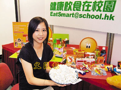 她表示,倘若一名學童持續(xù)每周進食一小包薯片、朱古力、曲奇餅、糖果、牛肉干及一罐汽水,一個學期可增重五磅,也有機會引致高血壓、腎病等慢性疾病。她建議小學禁售這些不健康零食,小食部應增加提供提子干、麥包、純味餅干等“宜多選擇”零食。而衛(wèi)生署將于今年底,向全港學校派發(fā)《小學生小食營養(yǎng)指引》修訂版,加入“宜多選擇”、“限量選擇”及“少選為佳”的小食例子,并教導學校如何分辨食物,將食物歸入上述三種類別。