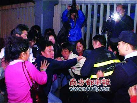 晚上近8時(shí),涉事警員在同僚護(hù)送下上了警車,現(xiàn)場(chǎng)游客見(jiàn)狀一擁而上,要求相關(guān)警員留下,雙方發(fā)生推撞。其間,多名警員強(qiáng)行將姓董的領(lǐng)隊(duì)及男領(lǐng)隊(duì)等5人帶走,游客見(jiàn)狀阻止。