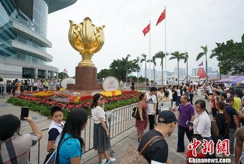1997年7月1日,中華人民共和國(guó)香港特別行政區(qū)正式成立,當(dāng)天早上8:30,前國(guó)家主席江澤民及前特區(qū)行政長(zhǎng)官董建華,聯(lián)同特區(qū)主要官員、嘉賓和市民,在金紫荊廣場(chǎng)參與國(guó)旗區(qū)旗升旗儀式。自此,國(guó)旗及區(qū)旗每日早上8:00升起,傍晚6:00降下,吸引不少旅客和市民觀看。