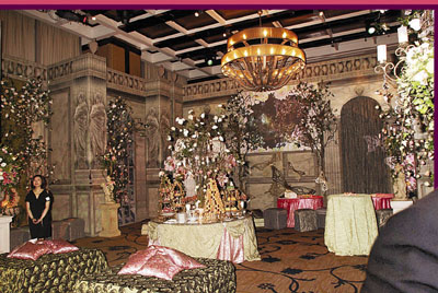 16日的喜宴共分兩場(chǎng),下午是邀請(qǐng)李家誠(chéng)兩公婆已有小孩子的朋友及其大女的同學(xué),晚上正式宴請(qǐng)親友及公司同事。16日下午一早有近百傳媒在酒店門外等候采訪,由于天氣酷熱,李家很細(xì)心放置冰箱給傳媒享用冰水,之后由公關(guān)安排傳媒拍攝位于四樓的飲宴場(chǎng)地,場(chǎng)內(nèi)由瑞士及意大利設(shè)計(jì)師Silvio Berge負(fù)責(zé),設(shè)計(jì)成一個(gè)Secret Garden歐洲式花園布置。