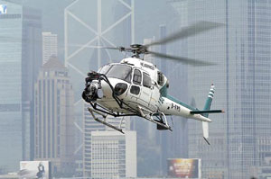 昨日下午4時,電影導(dǎo)演基思杜化羅倫乘坐一架黑色奔馳到達西九龍的直升機停機坪,與直升機上的工作人員聊天,期間更反過來用相機拍攝記者。之后,兩架直升機則出發(fā)到中環(huán)、上環(huán)一帶上空進行多次低飛盤旋視察。