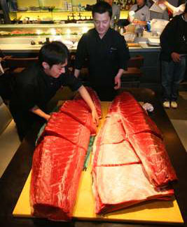 據(jù)香港大公報(bào)報(bào)道,東京中央批發(fā)市場在每一年開市所售的第一條魚,都是當(dāng)日全場“最大、最靚”,傳統(tǒng)稱為“日本一”。板前壽司老板鄭威濤以約44萬港元投得該條重276公斤的“魚王”,是首次有港人投得“日本一”!棒~王”昨日已送抵香港,不少市民專程前往各分店一嘗“天價(jià)魚王”的滋味,刺身價(jià)錢由50元至150元一件不等。