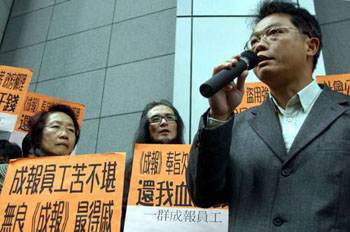 大約三十名《成報(bào)》前員工22日中午在工聯(lián)會(huì)立法會(huì)議員陳婉嫻陪同下,手持橫額和標(biāo)語(yǔ)到在灣仔的警察總部抗議并報(bào)案,要求警方商業(yè)罪案調(diào)查科就成報(bào)欠薪事件進(jìn)行調(diào)查,協(xié)助50名員工追討300萬(wàn)元欠薪。員工代表說,法庭去年雖然裁定《成報(bào)》要分四期償還欠薪,但員工至今仍未收到款項(xiàng),促請(qǐng)政府正視事件,并希望政府檢討勞工法例。