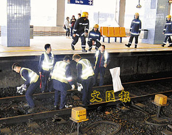 消防人員在冒煙列車(chē)開(kāi)走后繼續(xù)檢查。(圖片來(lái)源:文匯報(bào))
