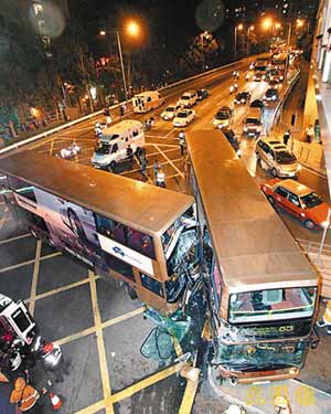 香港沙田兩巴士相撞致25人浴血 疑司機闖紅燈(圖)