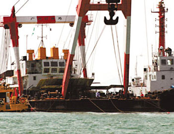 張健文認(rèn)為可以派出曾經(jīng)打撈宋代古沉船“南海一號”的大型吊船“華天龍”來港,由于“華天龍”現(xiàn)在租給其它公司,正在西江一帶施工,所以最快要到星期五才能抵港。當(dāng)“華天龍”抵達(dá),將拖船吊起后,會先抽走船內(nèi)的海水,整個過程需時約6至7小時。