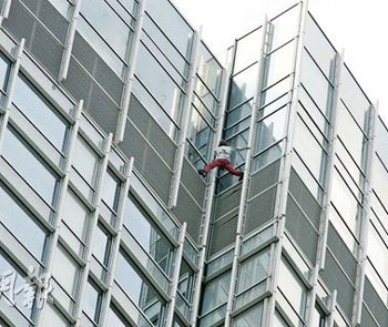 中新網(wǎng)4月16日電 據(jù)香港明報(bào)報(bào)道,法國蜘蛛俠再戰(zhàn)香港摩天大廈!曾征服世界近70幢高樓的攀爬好手羅伯特,繼1996年及2005年成功攀登遠(yuǎn)東金融中心及長江集團(tuán)中心后,15日再度徒手攀爬樓高60層的中環(huán)四季酒店。其間他因頂層結(jié)構(gòu)復(fù)雜險(xiǎn)告失手,幸最終有驚無險(xiǎn),大批市民報(bào)以掌聲及喝彩。