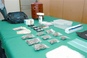 警員隨后帶同疑犯到其位于北區(qū)的寓所調(diào)查,在其睡房一個(gè)背囊內(nèi)發(fā)現(xiàn)電子秤、膠袋等懷疑毒品包裝工具。警員隨后作仔細(xì)搜查,在單位門外化寶盆內(nèi)發(fā)現(xiàn)一個(gè)密封的膠盒,內(nèi)里共有9包共重177克的毒品“大麻花”。