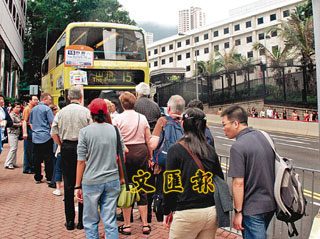 香港山頂纜車服務(wù)暫停,大批游客須改乘巴士上山頂。(圖片來源:文匯報(bào))