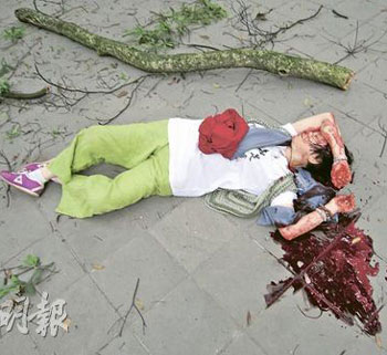 由于言語不通,小文幾經(jīng)艱辛,終在他人協(xié)助下將重傷的胞姐送往都江堰某醫(yī)院,不料市內(nèi)有兩間醫(yī)院也損毀倒塌,且斷水斷電,早堆滿了尸體及傷者。數(shù)小時后,小文與已陷入昏迷的姐姐擠上載滿傷者的救護車,前往成都四川省人民醫(yī)院求醫(yī)。