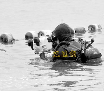承辦商派出蛙人下海檢查防鯊網(wǎng)。(圖片來源:文匯報(bào))