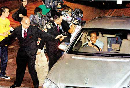 前天,香港高等法院判處郭炳湘申請(qǐng)禁制令敗訴后,郭炳湘架上墨鏡,乘坐七人車離開(kāi)郭家大宅,他發(fā)現(xiàn)有記者尾隨,即拉下車內(nèi)所有窗簾加速行駛,并在香港鬧市內(nèi)繞圈十多分鐘,最后到達(dá)新鴻基集團(tuán)旗下的國(guó)際金融中心二期。