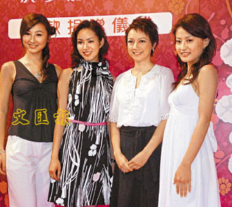 陳倩揚、高海寧、梁倩汶將獎金捐作賑災(zāi),由“慧妍雅集”主席楊婉儀(右二)代收。(圖片來源:文匯報)