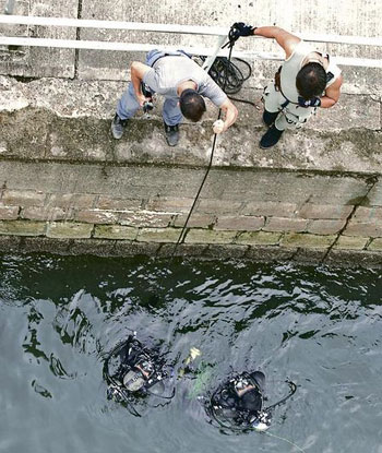 至7日下午2時許,探員將疑兇蒙頭押到觀塘碼頭重組案情,由他指出丟尸位置,警方出動約20名飛虎隊“水鬼”下海打撈尸體,至下午5時仍無獲,暫時收隊,8日繼續(xù)搜尋。