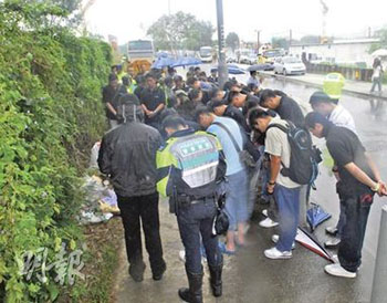 蘇志豪的親友11日到殮房認尸后,與其同事分乘兩架旅游大巴,一行逾百人到出事現(xiàn)場致祭。部分女親友表現(xiàn)激動,不斷流淚,要由旁人攙扶安慰,場面哀傷。