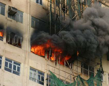 消防員趕抵時肇事單位已陷入火海,于是派人登樓疏散近百工人到安全地方,并架起云梯射水及派煙帽隊進(jìn)入火場灌救;鹁21分鐘后升為三級,廠房內(nèi)冒出火舌及大量黑煙,整條街道曾被黑煙籠罩,望不到肇事大廈外貌。