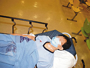 涉刺傷妻子后畏罪自殺的男子送院。(圖片來源:文匯報(bào))