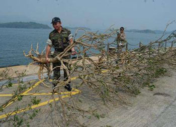 香港水警檢獲一批“九里香”樹。(圖片來源:大公報)