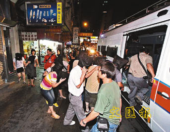 涉聚賭男女由探員押上警車(chē)。(圖片來(lái)源:文匯報(bào))
