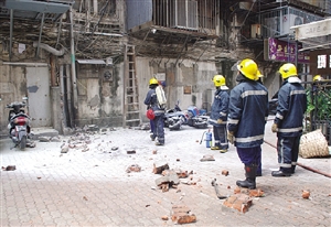 有商號(hào)以為金來大廈梯間電箱爆炸,立即報(bào)警求助。消防搶救車、水泵車和救護(hù)車接報(bào)到場調(diào)查,在現(xiàn)場拉起圍帶,封鎖懷疑爆炸的兩個(gè)地點(diǎn)一帶,避免行人走近。
