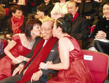 兩位司儀汪明荃和鄭裕玲左右親六叔。(圖片來(lái)源:文匯報(bào))