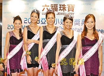 中新網(wǎng)12月11日電 據(jù)香港《文匯報》報道,五位新鮮“出爐”的亞洲小姐:冠軍姚佳雯、亞軍顏子菲、季軍賴琳恩及兩位友誼小姐姚鳳鳳與林淑蓉,10日到香港北角珠寶首飾贊助商門巿領(lǐng)獎。