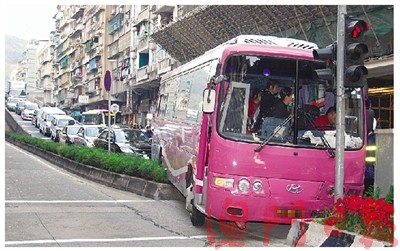 中新網(wǎng)1月15日電 據(jù)澳門(mén)日?qǐng)?bào)報(bào)道,一輛旅游巴接載仁愛(ài)安老院十多名行動(dòng)不便的長(zhǎng)者參觀澳門(mén)回歸賀禮陳列館后,回程時(shí)經(jīng)松山隧道進(jìn)高士德大馬路天橋時(shí),疑剎車(chē)失靈狂沖下斜。當(dāng)時(shí)培正中學(xué)對(duì)面的交通燈位有一輛的士正在候燈,巴士為免撞到的士,扭轉(zhuǎn)沖上花圃,再?zèng)_向安全島才停下,但仍撞及的士。
