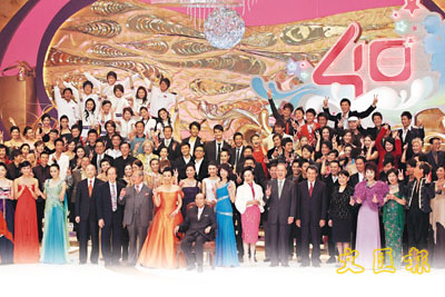 中新網(wǎng)11月20日電 香港無線電視為慶祝四十周年臺(tái)慶,昨(19日)晚舉行“萬千星輝賀臺(tái)慶”,今年的臺(tái)慶可謂雙重意義,除了賀無線四十周年外,還有老板邵逸夫爵士迎來百歲生日。當(dāng)晚全臺(tái)藝員傾力演出,并起用十全十美司儀陣容:汪明荃、鄭裕玲、曾志偉、陳百祥、丘凱敏、陳敏之、葉翠翠、崔建邦、鄧健泓及王貽興。