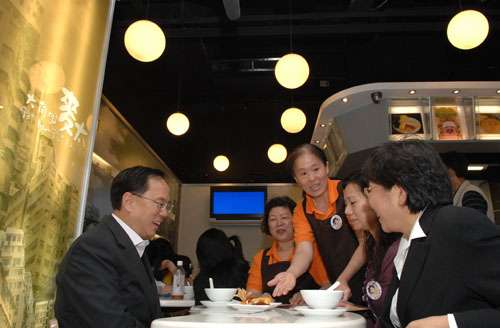 中新網(wǎng)10月31日電 香港特區(qū)行政長官曾蔭權(quán)昨日(三十日)到訪油尖旺區(qū),了解該區(qū)的最新發(fā)展。曾蔭權(quán)在一家甜品店表示,特區(qū)政府、商界和民間合作發(fā)展社會企業(yè),不但可以推動關(guān)懷文化,發(fā)揚“助人自助”的精神;同時亦可為小區(qū)創(chuàng)造更多職位。他表示,會邀請商界及非牟利團體一同開展這些計劃。