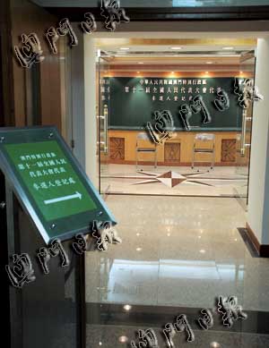 目前選舉工作辦公室已完成布置,在大廈大堂、電梯到大廈六樓都有醒目提示,指示參選人登記處的地點(diǎn)。