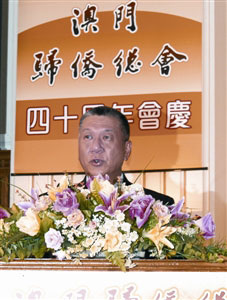 中新網(wǎng)3月27日電 據(jù)澳門日?qǐng)?bào)報(bào)道,歸僑總會(huì)26日舉行盛大酒會(huì),數(shù)百名海內(nèi)外僑界代表及澳門各界嘉賓歡聚一堂,慶祝該會(huì)成立40周年。行政長(zhǎng)官何厚鏵致詞表示,澳門各界歸僑在推動(dòng)澳門經(jīng)濟(jì)多元發(fā)展,在促進(jìn)澳門社會(huì)的穩(wěn)定和諧,發(fā)揮了舉足輕重的作用。
