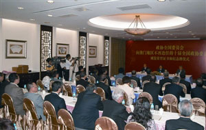 楊崇匯贊揚澳區(qū)全國政協(xié)委員一向關心祖國的統(tǒng)一大業(yè)。很多委員利用自己的威望、影響和廣泛的社會聯(lián)系,在反“臺獨”、促統(tǒng)一的工作中發(fā)揮特有作用。