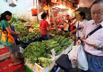 圖:香港市民買菜時(shí)感受到通脹壓力。(圖片來源:大公報(bào))