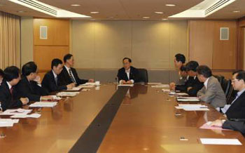 特首曾蔭權(quán)9日下午在中區(qū)特區(qū)政府合署會見鄉(xiāng)議局代表,繼續(xù)就《施政報告》進行咨詢。(圖片來源:文匯報)