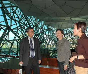 香港發(fā)展局局長林鄭月娥(中)參觀澳大利亞墨爾本聯(lián)邦廣場。(圖片來源:香港特區(qū)政府網(wǎng)站)