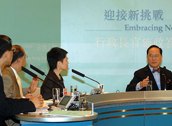 曾蔭權重申,特區(qū)政府堅持“大市場、小政府”的原則,但金融市場有需要時,特區(qū)政府必定采取快而準、到位及夠力度的行動,但沒有需要時,特區(qū)政府必定退出。