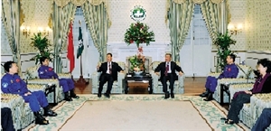何厚鏵在晚宴前會(huì)見(jiàn)了代表團(tuán)一行,國(guó)家載人航天工程贈(zèng)送“神舟七號(hào)”載人飛船模型給特區(qū)政府,何厚鏵代表特區(qū)政府贈(zèng)送金蓮花擺設(shè)給代表團(tuán)。