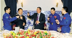 特區(qū)政府傍晚在政府總部設(shè)宴歡迎“神舟七號(hào)”載人航天飛行代表團(tuán)。何厚鏵在晚宴上致辭表示:“祖國(guó)航天事業(yè)能夠可持續(xù)地取得精益求精的發(fā)展,除了雄厚的國(guó)力、優(yōu)質(zhì)的統(tǒng)籌、杰出的人才,以及科學(xué)的探索勇氣之外,更重要的,就是這一事業(yè)的廣大參與者,具有崇高的民族自豪感和無(wú)私的報(bào)國(guó)精神,從而,能夠一步一腳印地,克服一個(gè)又一個(gè)科技挑戰(zhàn)和心理挑戰(zhàn),一次又一次地和全國(guó)人民一起分享成功的果實(shí)!