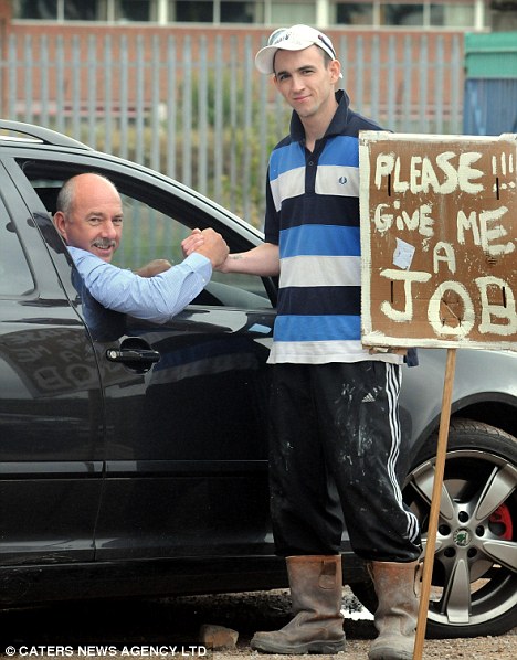 中新網(wǎng)7月26日電 據(jù)英國(guó)媒體26日?qǐng)?bào)道,23歲的英國(guó)青年馬克•威爾頓近日舉著一塊自制的木牌,站在英國(guó)最繁華的特倫特河畔斯多克市為自己做起廣告。牌子上寫著“請(qǐng)給我份工作”。
