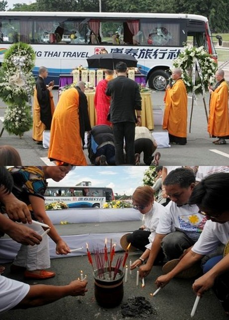 中新網(wǎng)8月25日電 綜合媒體報(bào)道,8月25日,是菲律賓所定的全國(guó)哀悼日,菲律賓人將與中國(guó)人一道,悼念在菲人質(zhì)劫持事件中遇難的中國(guó)香港游客。港府從24日至26日,連續(xù)三天為菲律賓人質(zhì)事件遇難者下半旗志哀。在菲律賓,民眾前往黎剎公園事發(fā)現(xiàn)場(chǎng)給遇難者獻(xiàn)花,氣氛凝重;遇難者家屬24日舉行路祭,場(chǎng)面催人淚下。