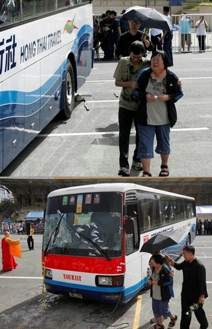 8月23日上午9時(shí)許,21名香港游客在馬尼拉遭一名菲律賓前警官劫持。菲當(dāng)局派出談判專家,試圖通過和平的談判方式解決危機(jī)。但是形勢(shì)在當(dāng)晚7時(shí)40分許急轉(zhuǎn)直下,遭劫持巴士?jī)?nèi)傳來數(shù)聲槍響,菲警方隨即實(shí)施突擊解救行動(dòng),將劫匪擊斃。