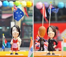 中新網(wǎng)11月12日電 據(jù)外媒報道,G20峰會正在韓國首爾舉行,當(dāng)?shù)厍逑◤V場上特地展出了參加G20峰會領(lǐng)導(dǎo)人的小型人像,誰知卻鬧出“烏龍”:代表澳大利亞總理吉拉德的人像穿上了一身傳統(tǒng)的奧地利服裝——紅白相間的縐摺連衣裙,還帶著粉紅的圍裙,猶如電影《音樂之聲》中的造型。后來韓國方面意識到了錯誤很快更換了衣服。