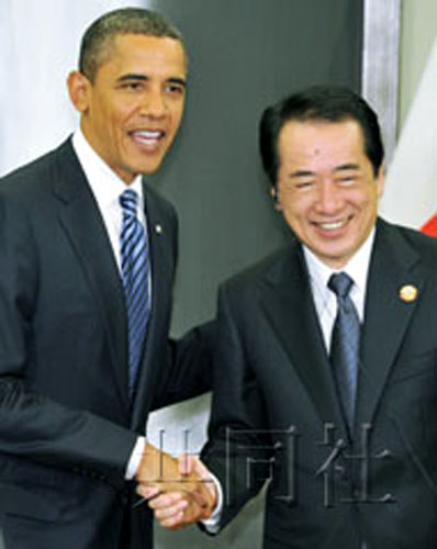 中新網(wǎng)11月13日電 據(jù)日本共同社13日?qǐng)?bào)道,日本首相菅直人13日上午在橫濱與來(lái)日參加亞太經(jīng)合組織(APEC)峰會(huì)的美國(guó)總統(tǒng)奧巴馬舉行會(huì)談。兩國(guó)首腦就進(jìn)一步“深化”同盟關(guān)系達(dá)成一致。會(huì)談結(jié)束后,奧巴馬向記者表示,美國(guó)將“毫不動(dòng)搖”地堅(jiān)持保衛(wèi)日本這一決心。