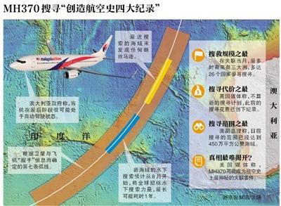 不僅花費(fèi)創(chuàng)紀(jì)錄,澳大利亞副總理沃倫·特拉斯26日說(shuō),搜尋MH370已遍及450萬(wàn)平方公里海域,這是“歷史上范圍最大的搜尋行動(dòng)”。