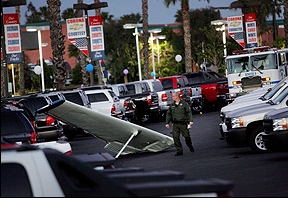 這起事故是發(fā)生在洛杉磯近郊的科洛納(Corona)市,兩家自用小型飛機在空中相撞后,其中一架飛機墜落到一個停車場,除了兩架飛機上的各2名駕駛和2名乘客人共4人之外,墜落的飛機殘骸直接撞擊到1輛停在停車場上的汽車,結(jié)果車上的1人喪生。